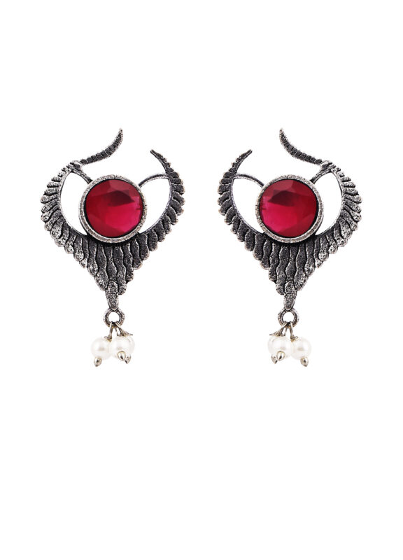 Maroon OX Curved Round Earring