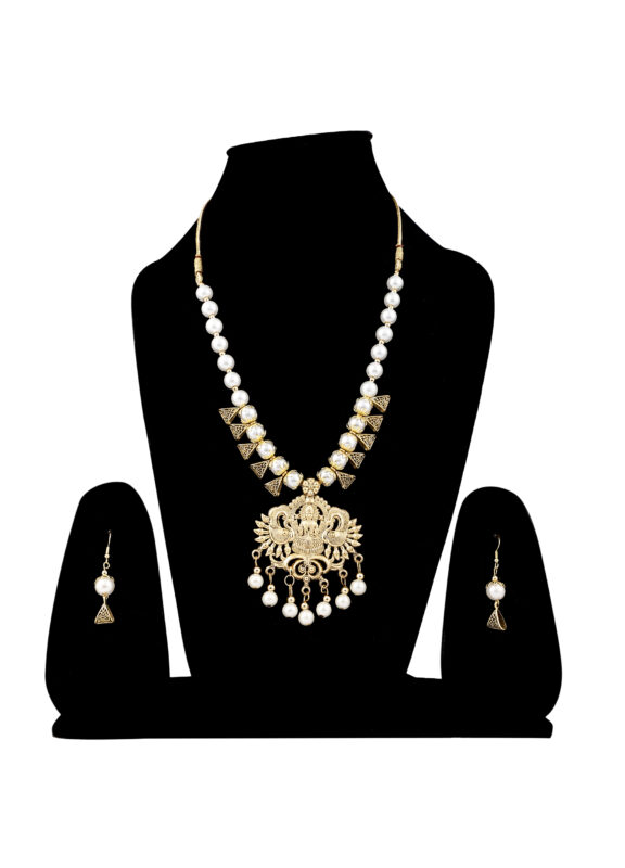 Off White Beads Oxidised Laxmi Design