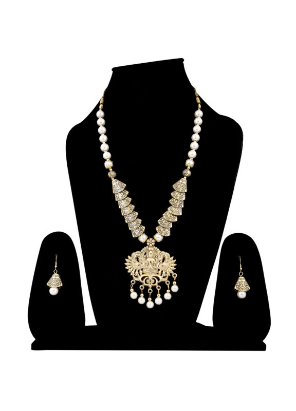 White Moti chain Peacock necklace set