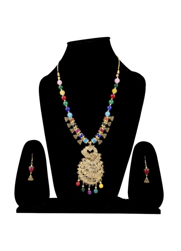White Moti chain Peacock necklace set