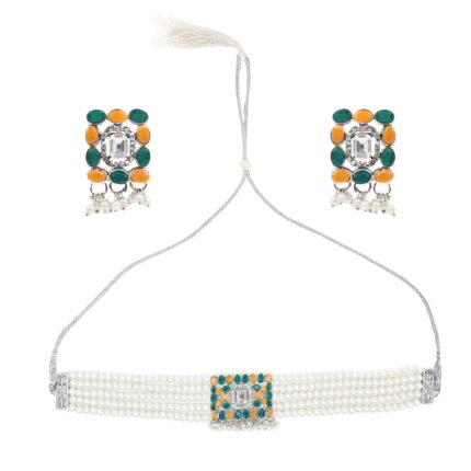 Green Orange Square Moti Necklace