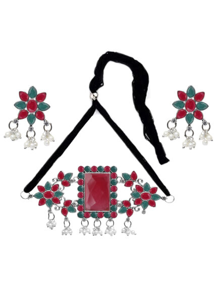 Green Maroon Square Moti Necklace