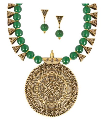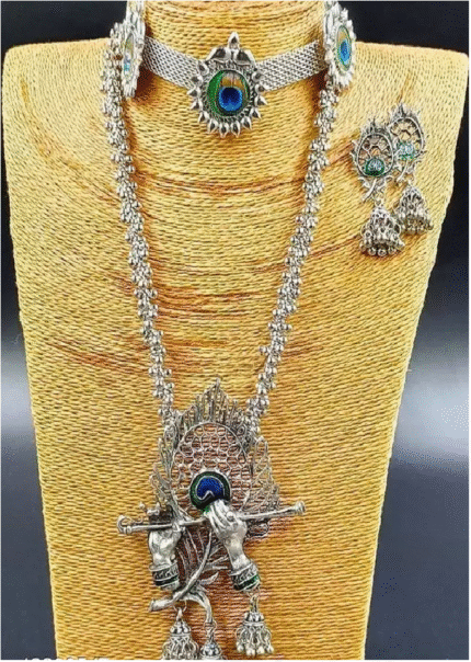 - Latest traditional oxidised silver necklace jewellery set