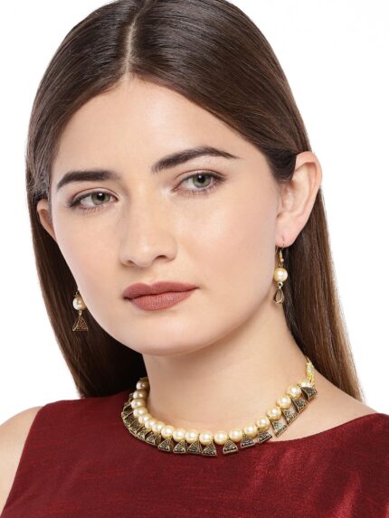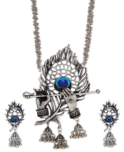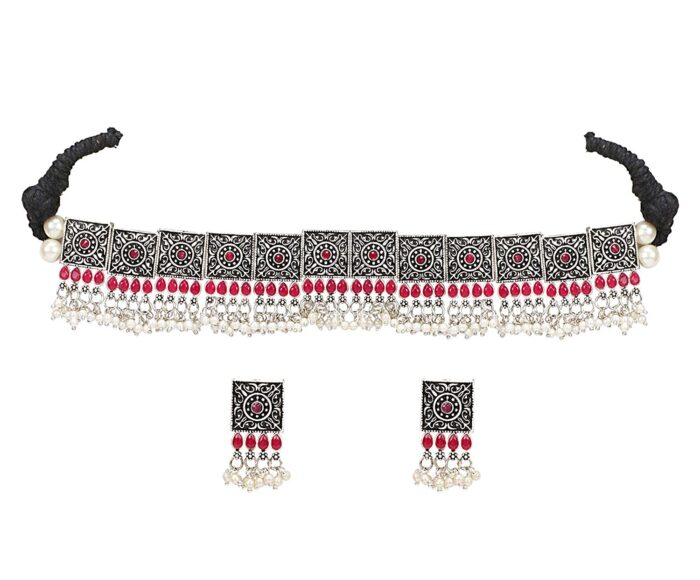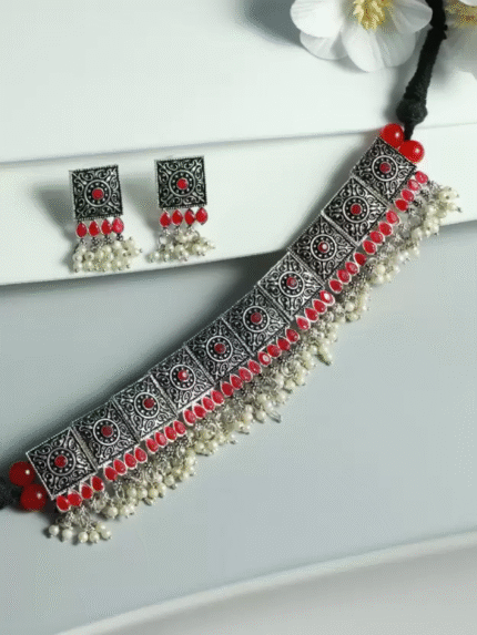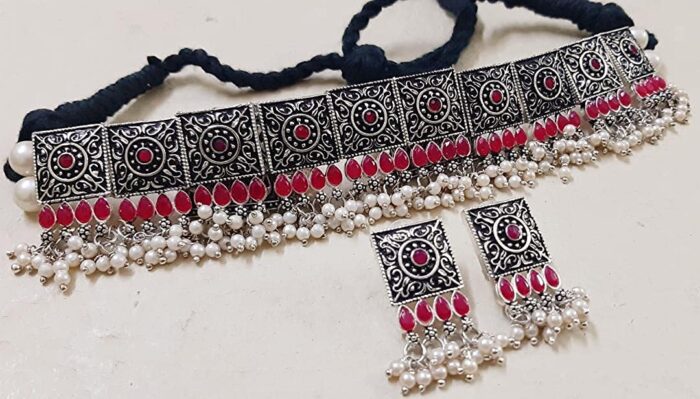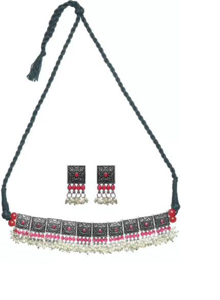 - Latest traditional oxidised silver necklace jewellery set