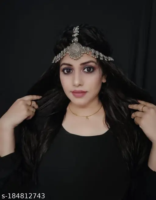 The beauty of traditional Indian jewelry comes alive in this oxidised mathapatti. With its detailed craftsmanship and timeless design, this piece is sure to make you feel like royalty on your special day.