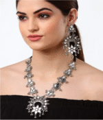 - Classic look Silver Oxidised Necklace set with Jhumka earrings for women to wear,