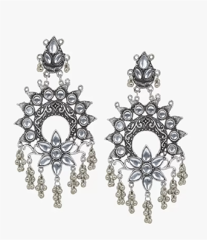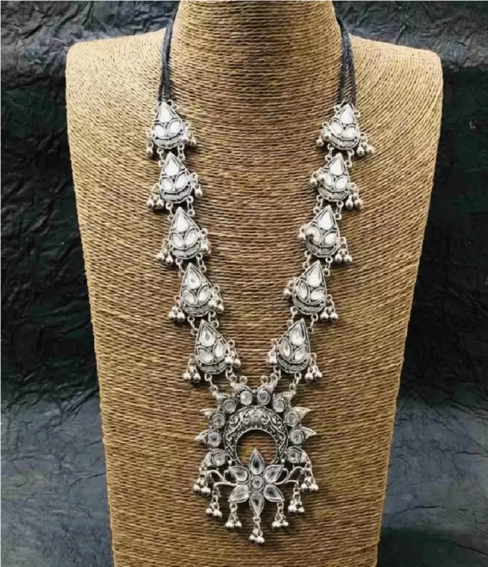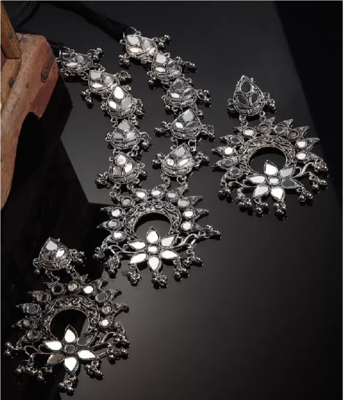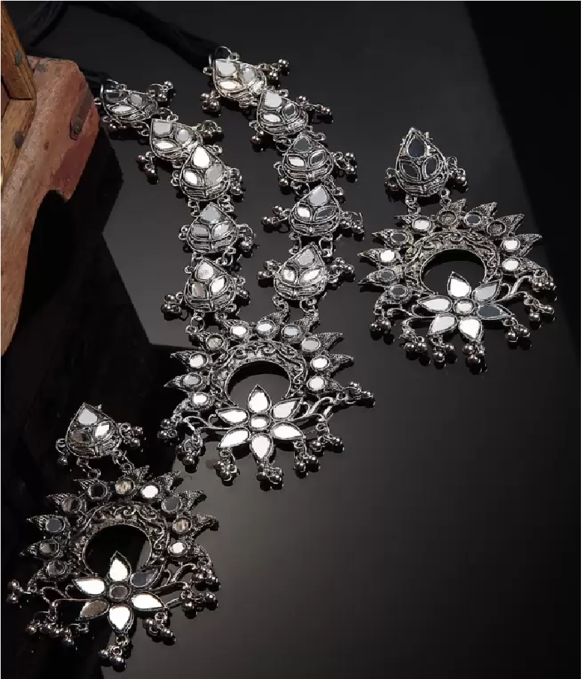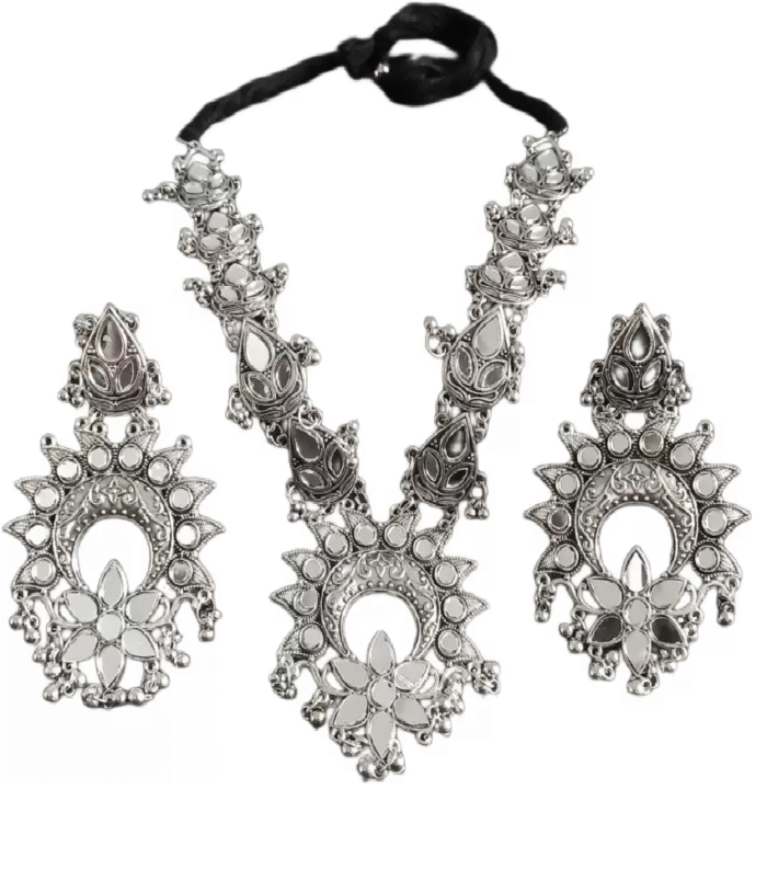 - Classic look Silver Oxidised Necklace set with Jhumka earrings for women to wear,