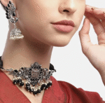 - Classic look Silver Oxidised Necklace set with Jhumka earrings for women to wear,