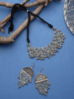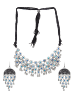 - Classic look Silver Oxidised Necklace set with Jhumka earrings for women to wear,
