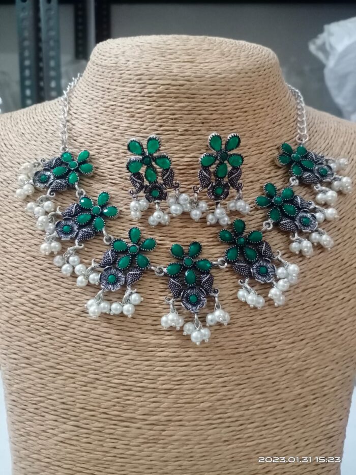 - Classic look Silver Oxidised Necklace set with Jhumka earrings for women to wear,