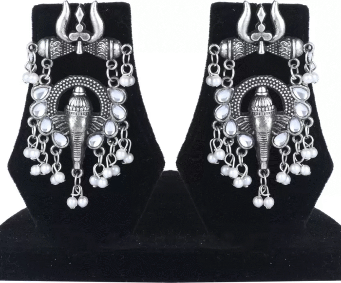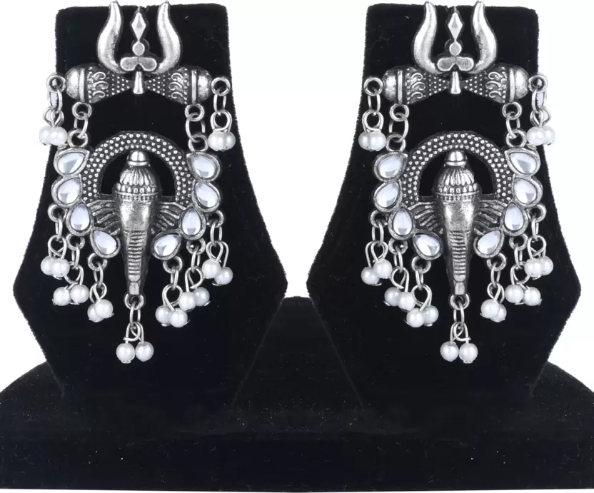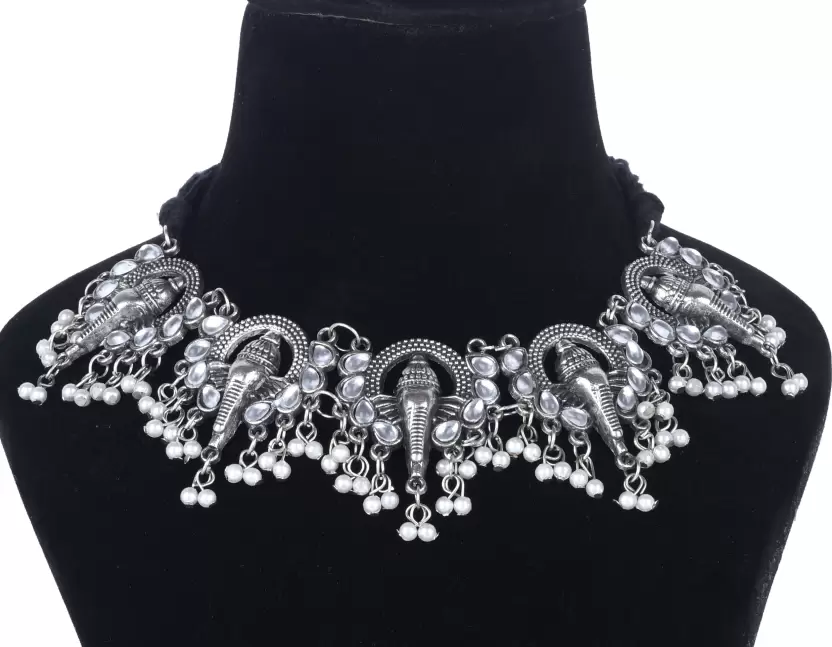 - Classic look Silver Oxidised Necklace set with Jhumka earrings for women to wear,