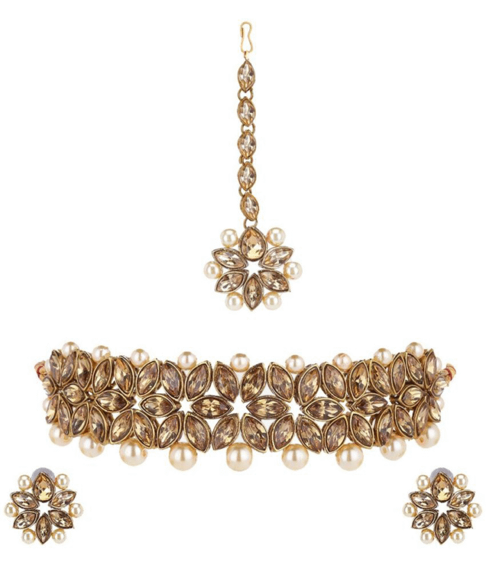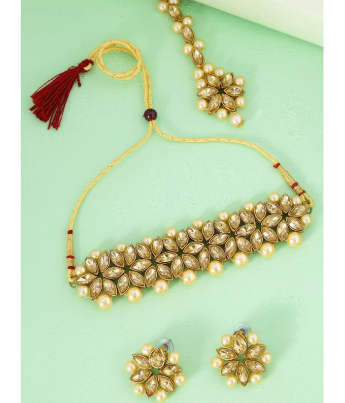 Be the first to review “Gold Moti Choker Necklace Set” Cancel reply