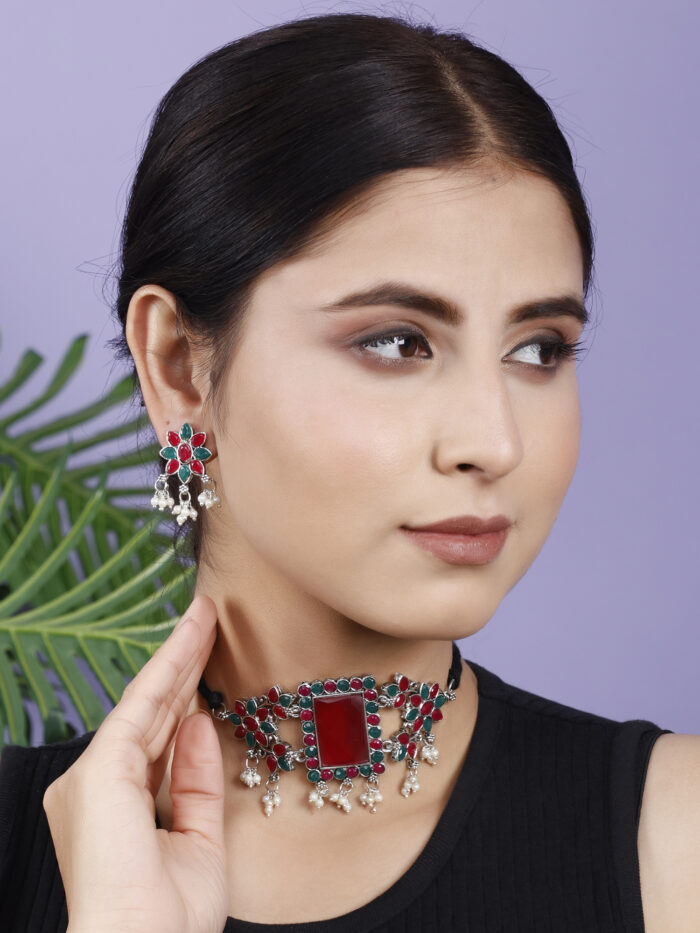 Be the first to review “Green Maroon With Rectangular Big stone choker” Cancel reply