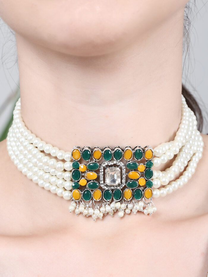 Be the first to review “Green Orange Square Moti Necklace” Cancel reply