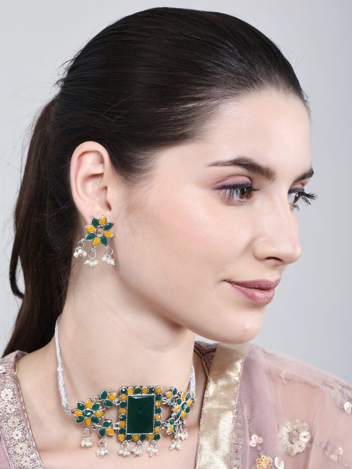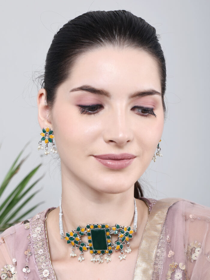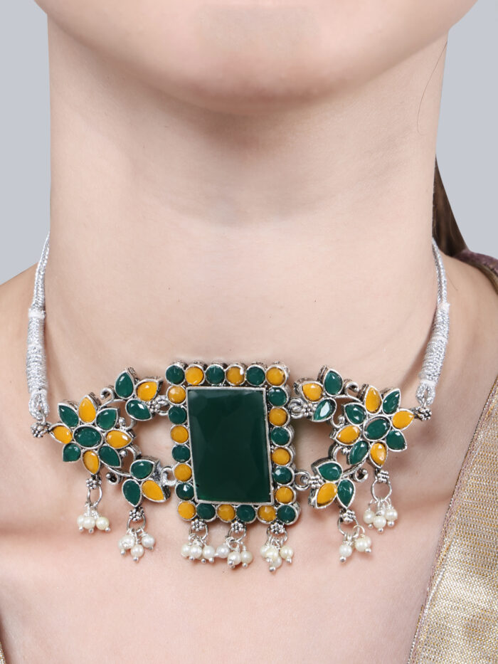 SKU: Green Yellow With Rectangular Big stone choker Categories: ,