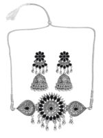 - Classic look Silver Oxidised Necklace set with Jhumka earrings for women to wear,