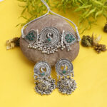 - Classic look Silver Oxidised Necklace set with Jhumka earrings for women to wear,