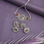 - Latest traditional oxidised silver necklace jewellery set
