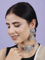 - Classic look Silver Oxidised Necklace set with Jhumka earrings for women to wear,