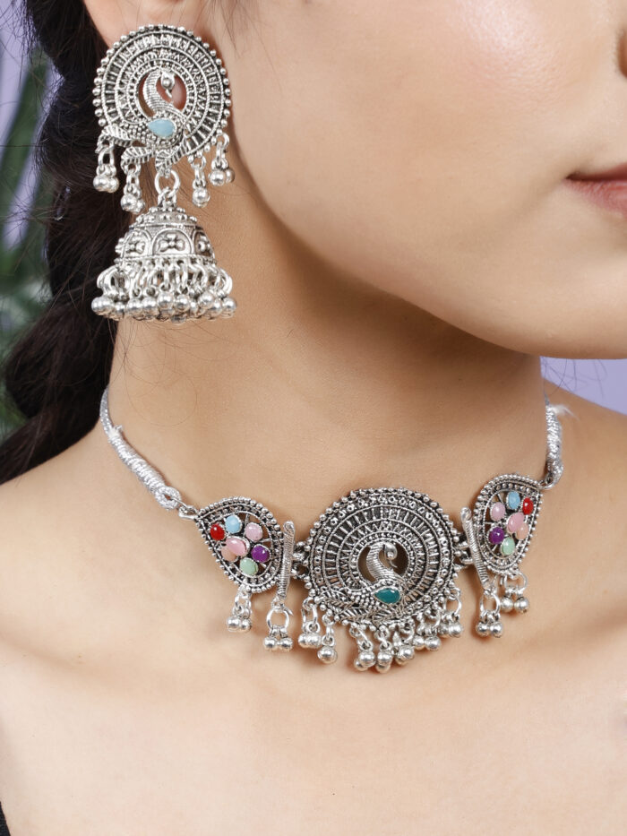 Be the first to review “GS Multicolor Flower Peacock Choker” Cancel reply