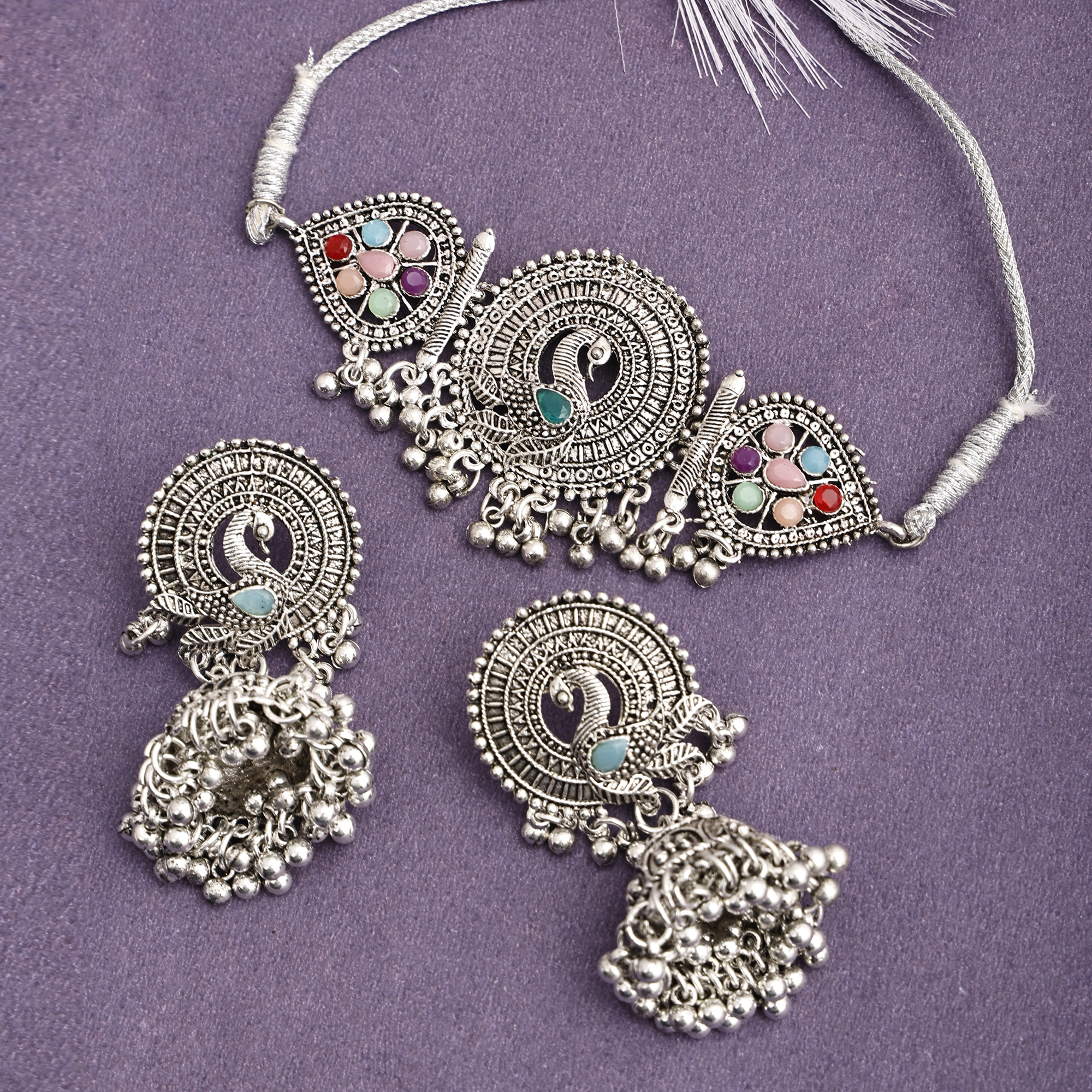 - Latest traditional oxidised silver necklace jewellery set