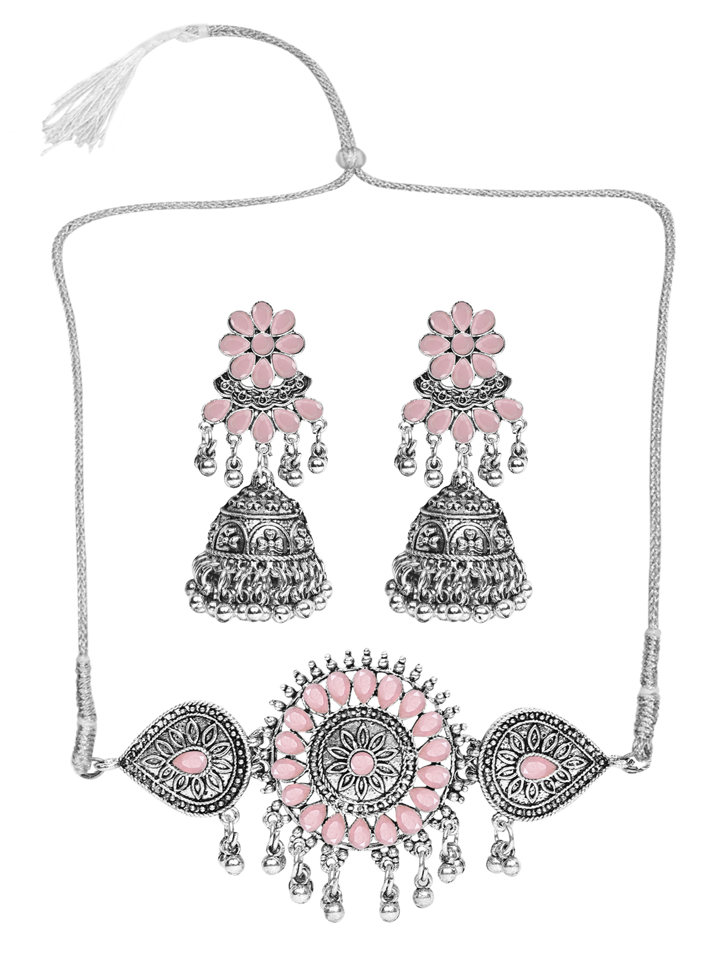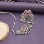 • Classic look Silver Oxidised Necklace set with Jhumka earrings for women to wear,
