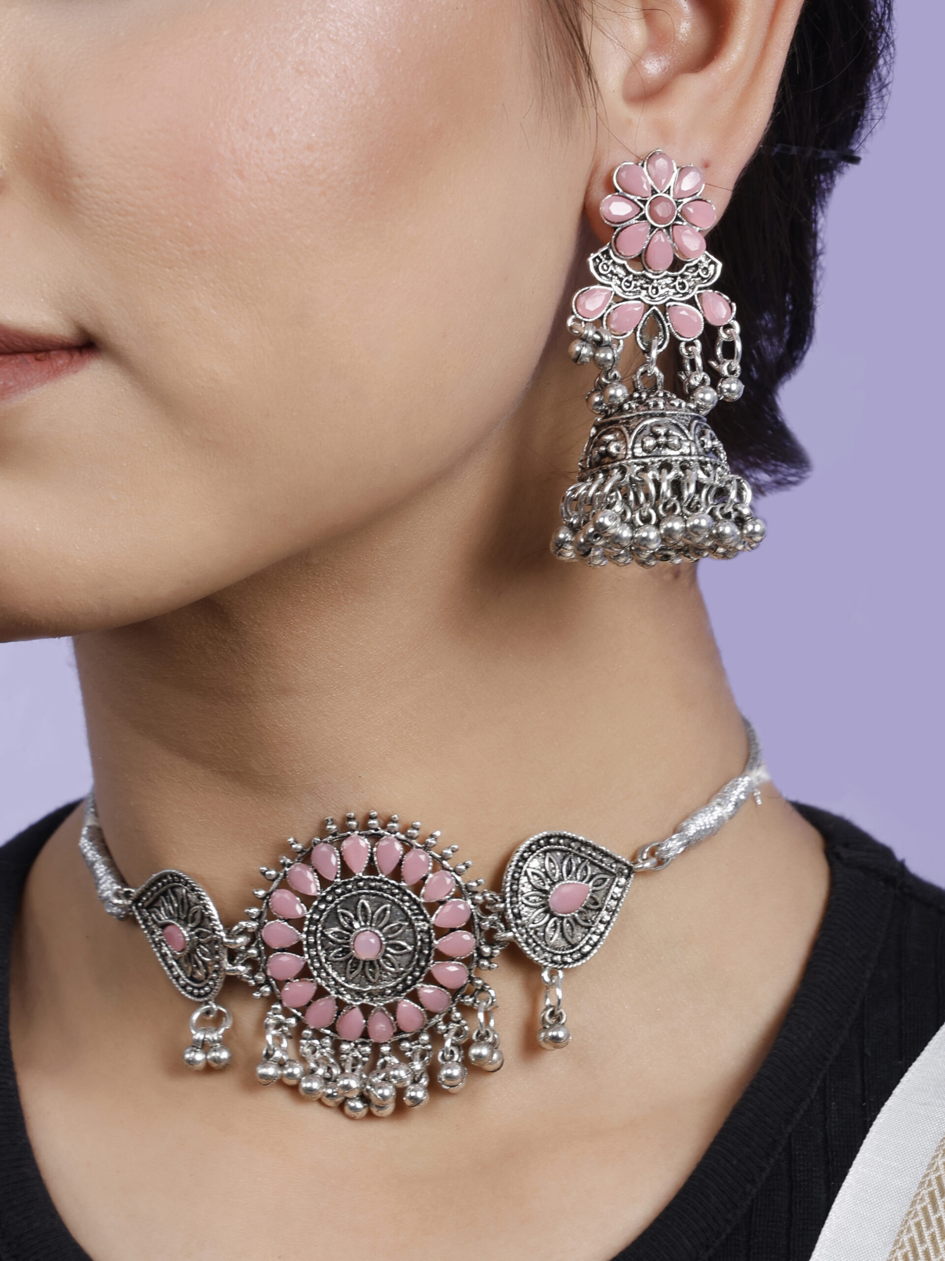 • Latest traditional oxidised silver necklace jewellery set
