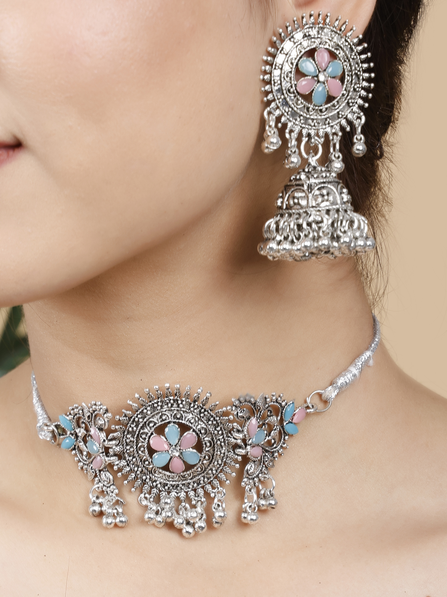 Be the first to review “GS Pink SkyBlue Round Center Flower Choker” Cancel reply