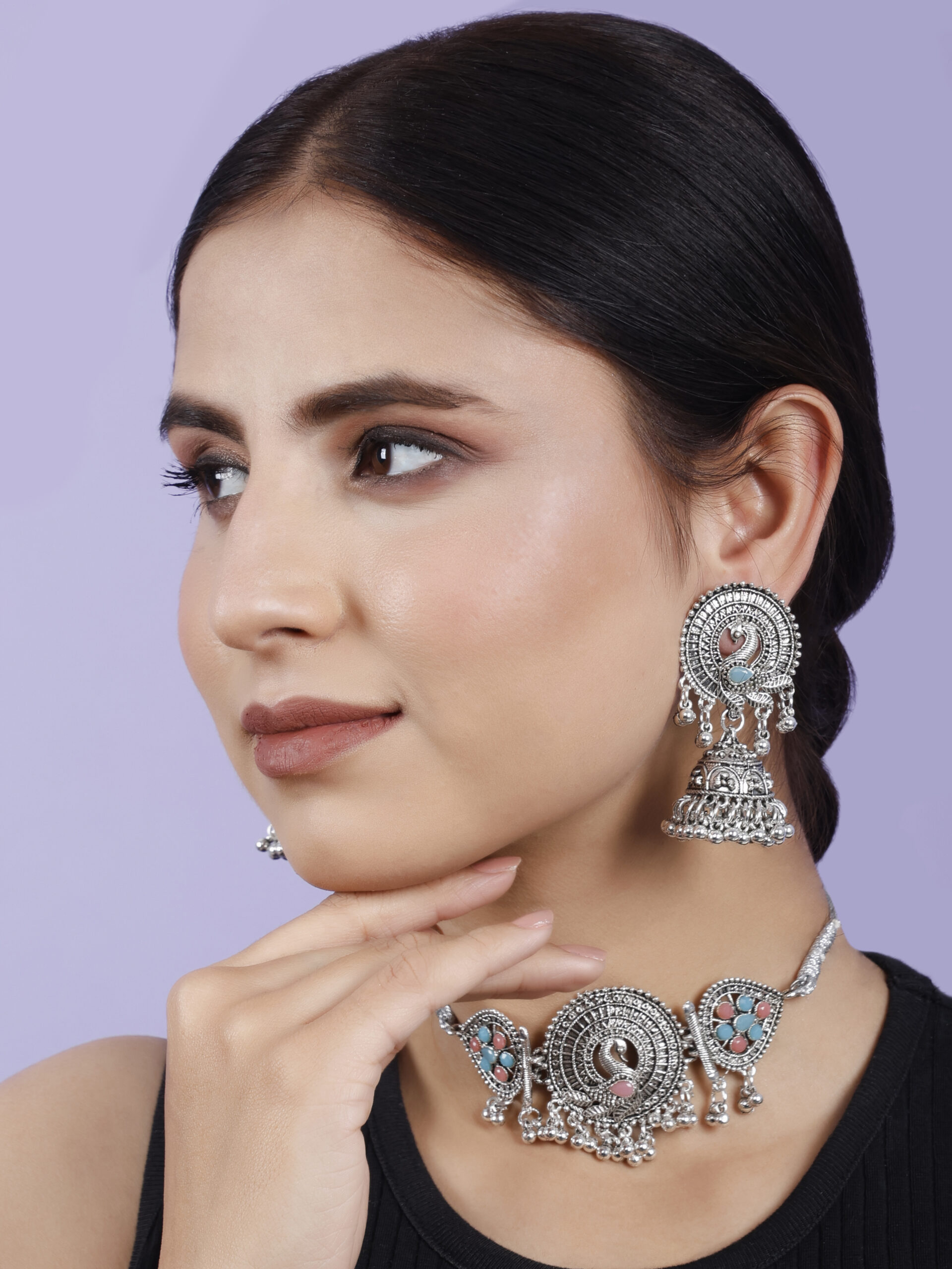 SKU: GS SkyBlue pink Flower Peacock Choker1-1-1 Categories: ,