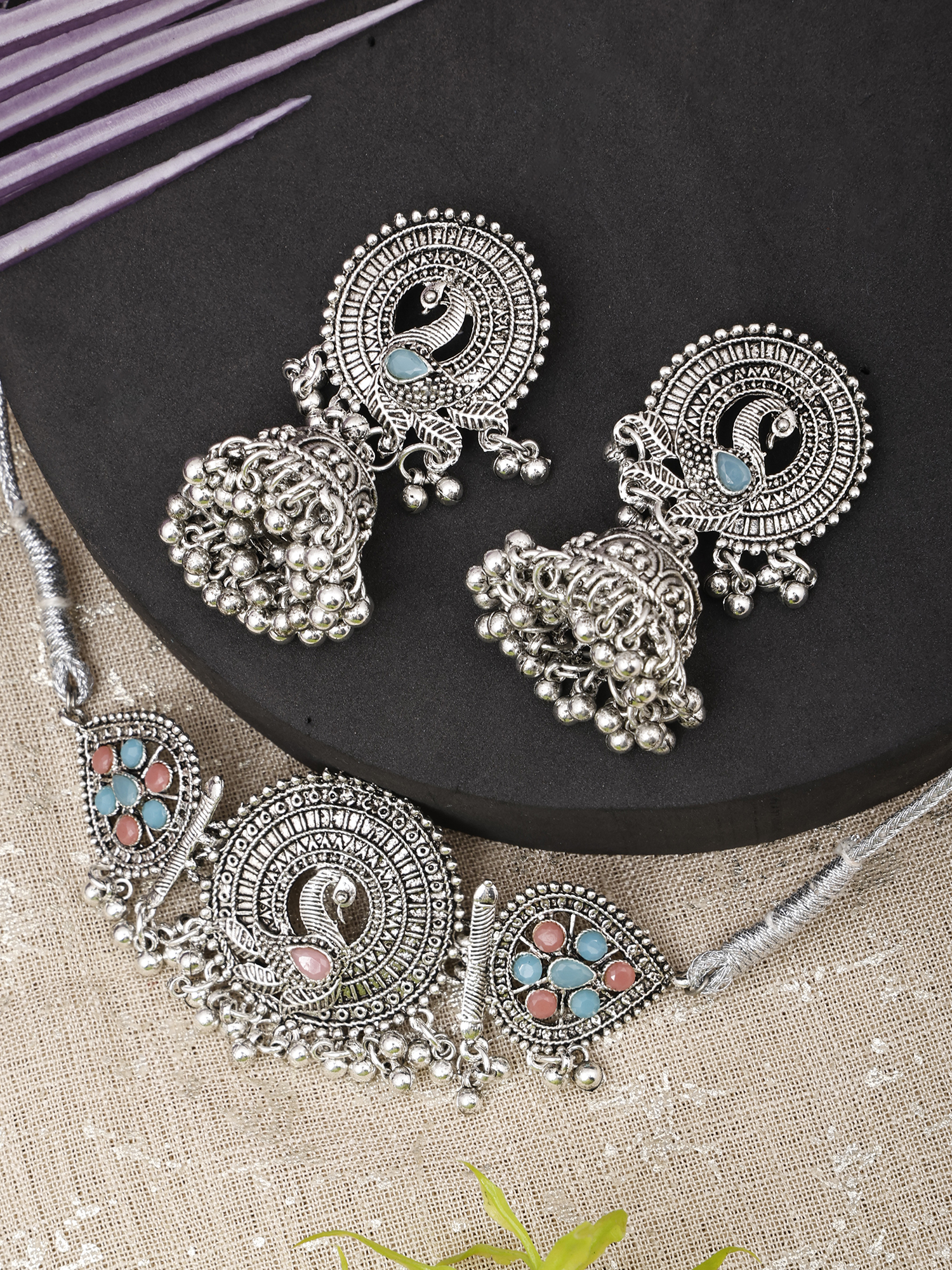- Latest traditional oxidised silver necklace jewellery set