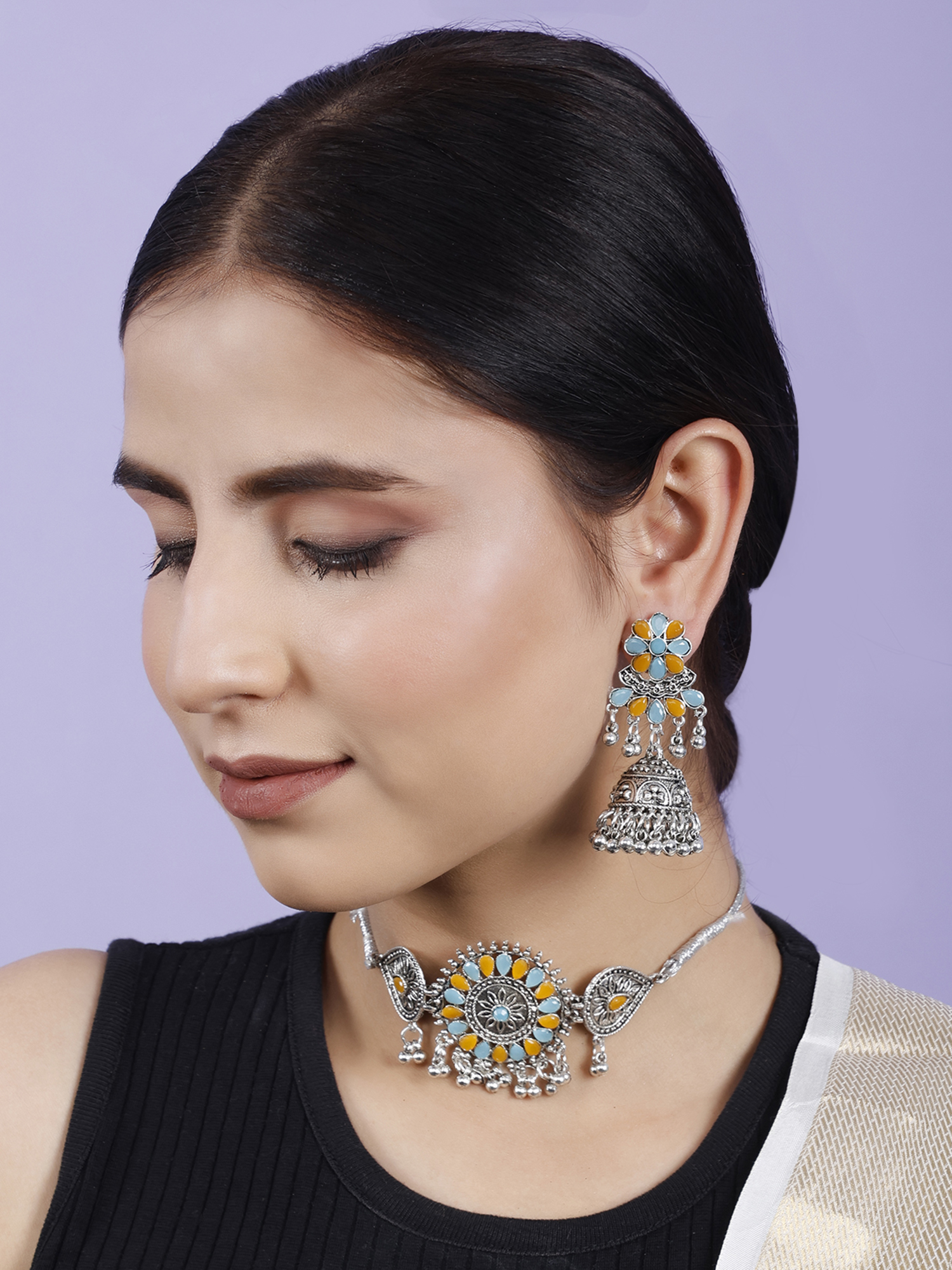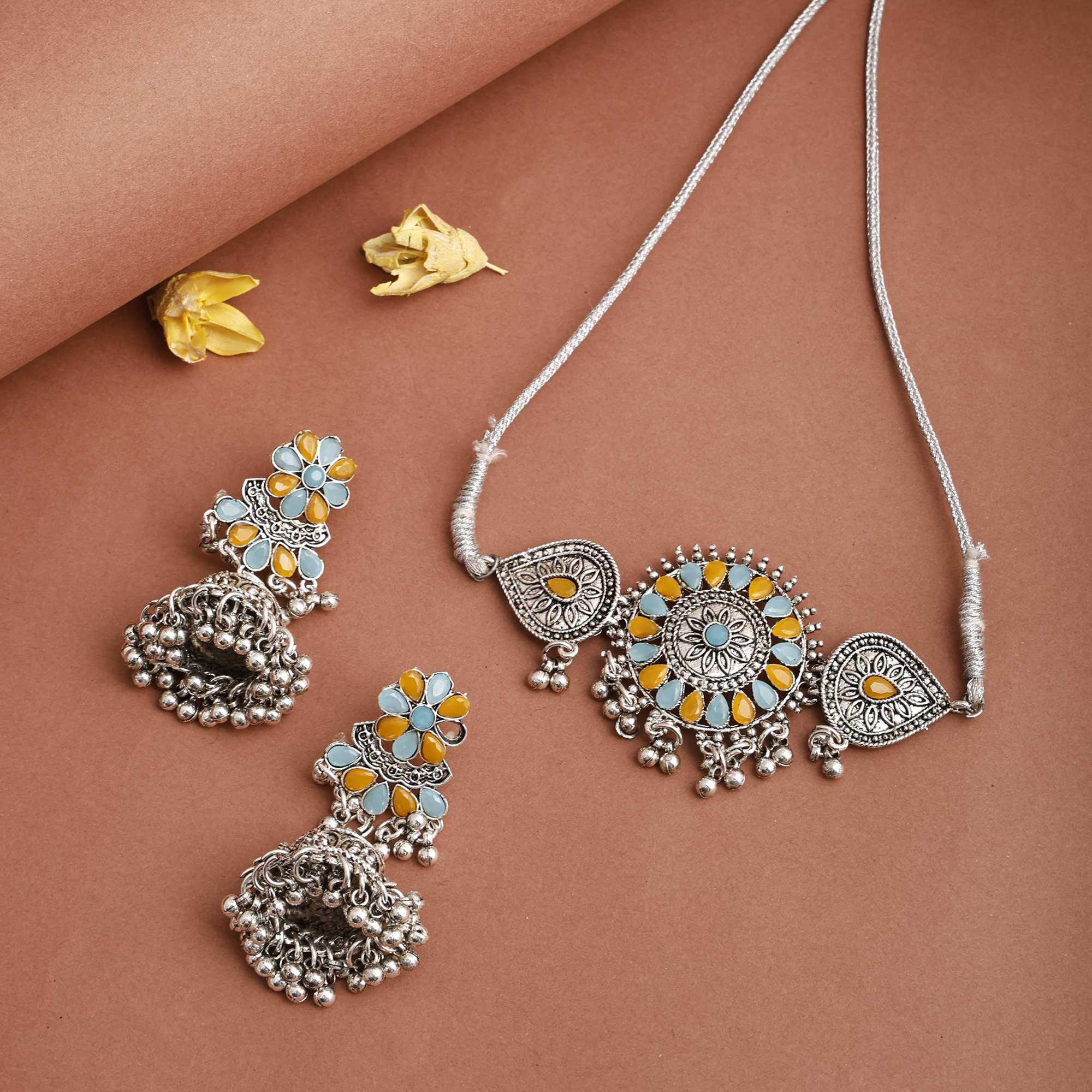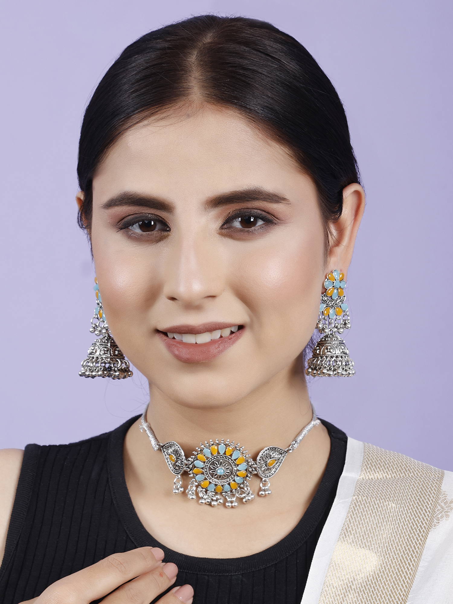 SKU: SkyBlue Yellow GS Flower Round Choker Categories: ,