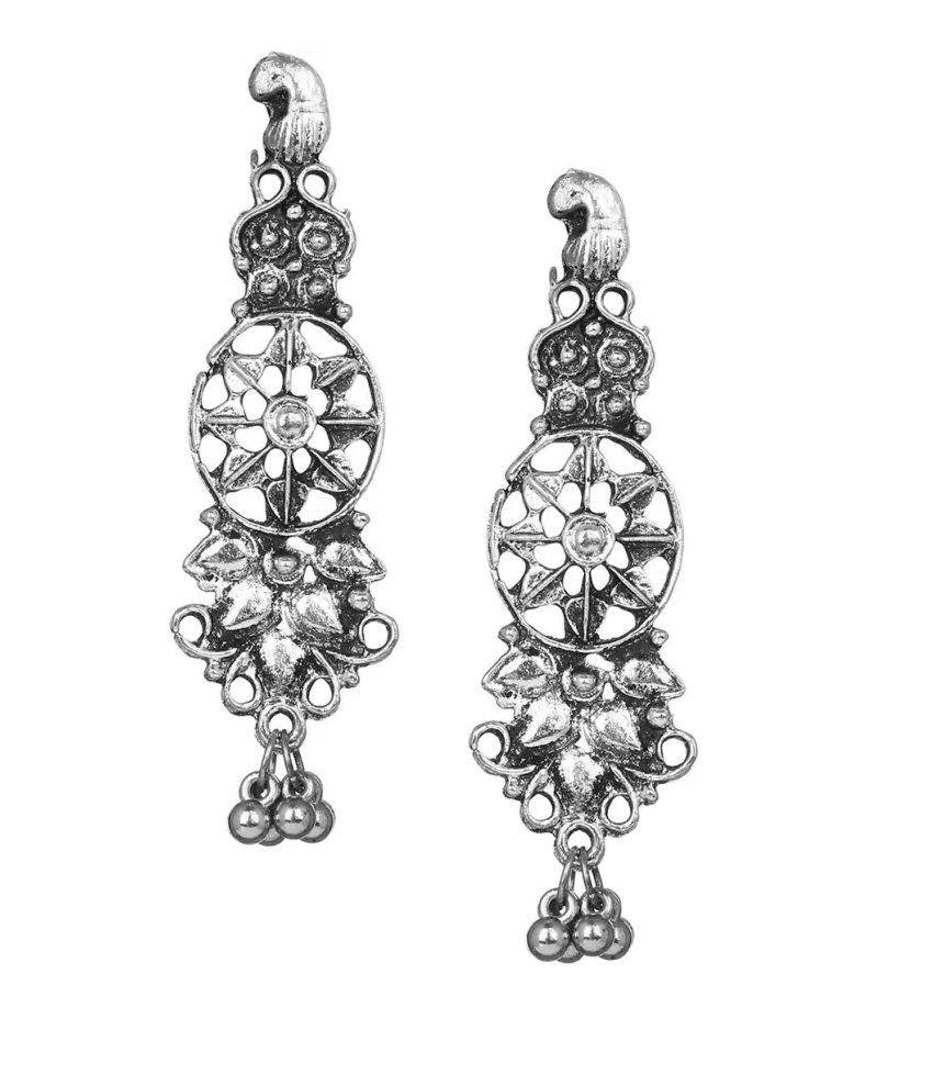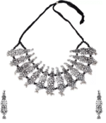- Classic look Silver Oxidised Necklace set with Jhumka earrings for women to wear,