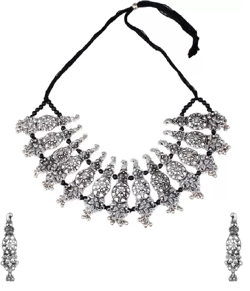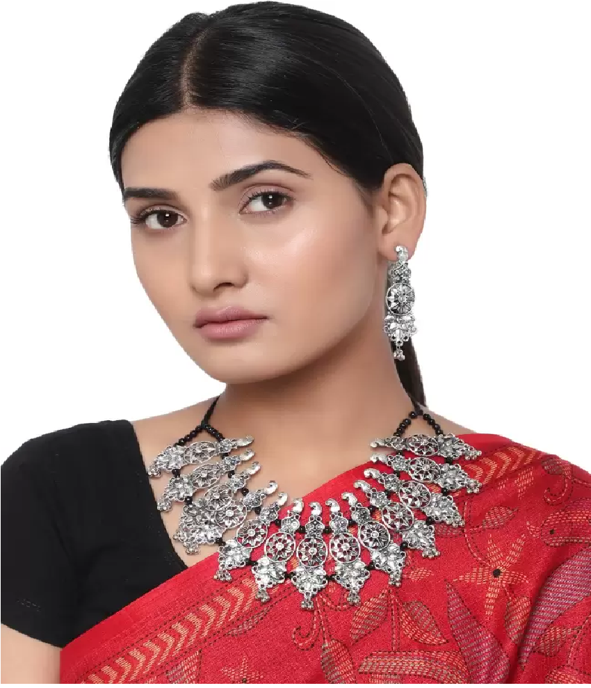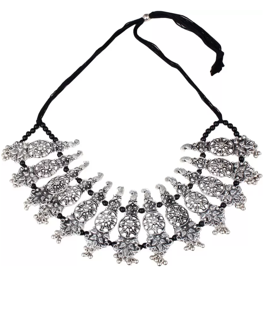 - Latest traditional oxidised silver necklace jewellery set