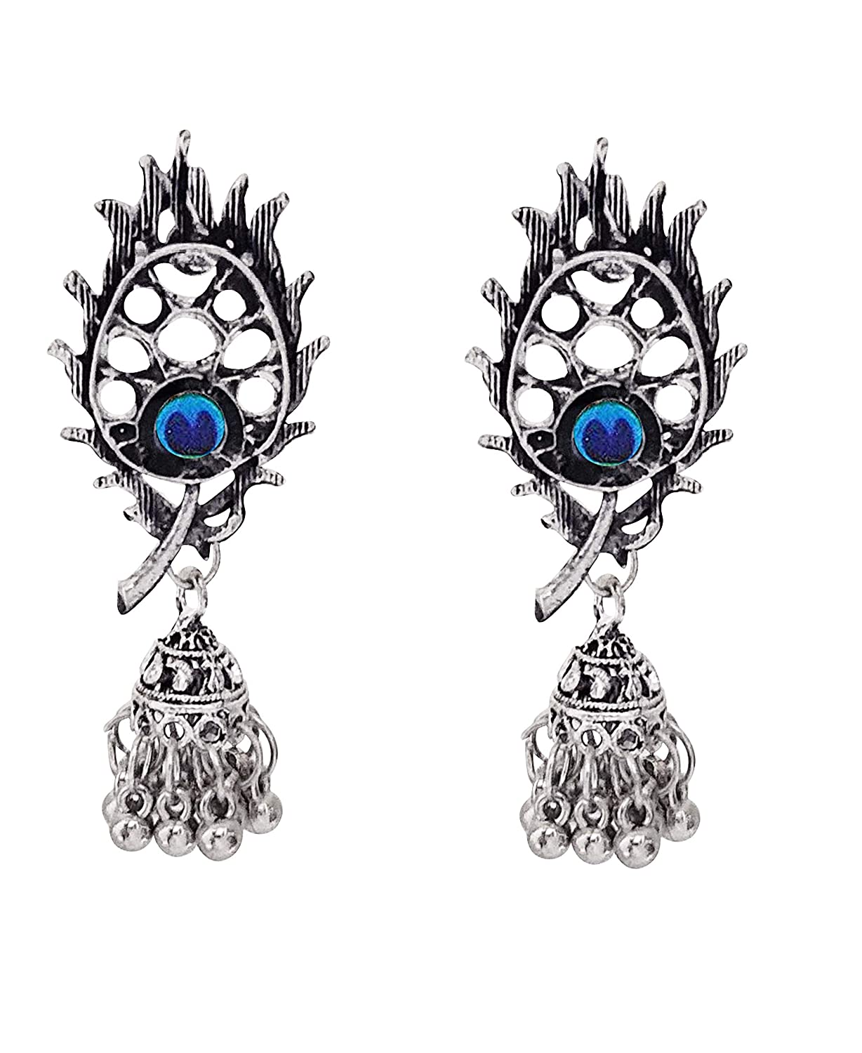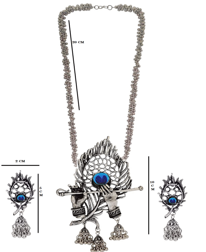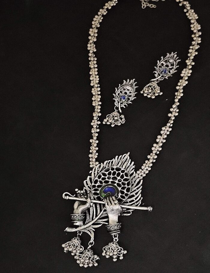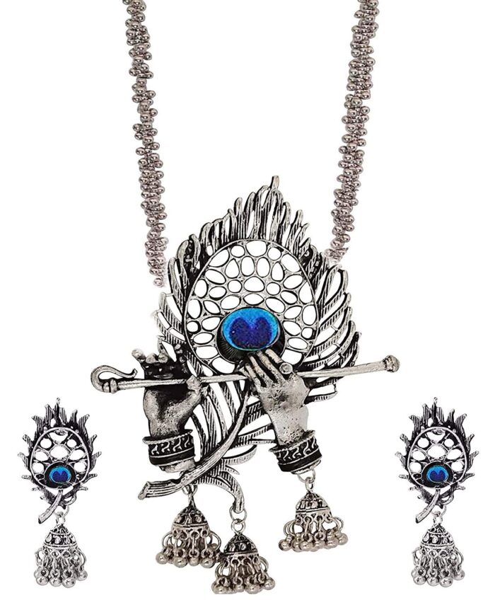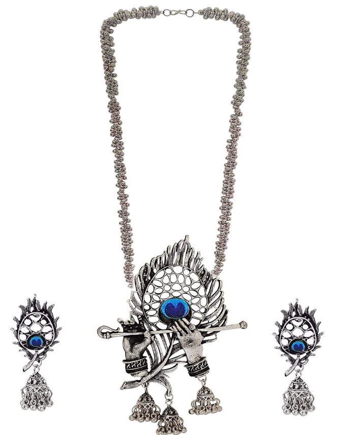 - Classic look Silver Oxidised Necklace set with Jhumka earrings for women to wear,