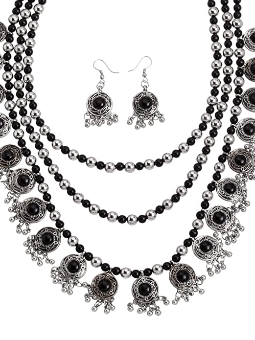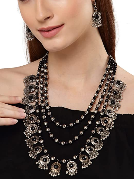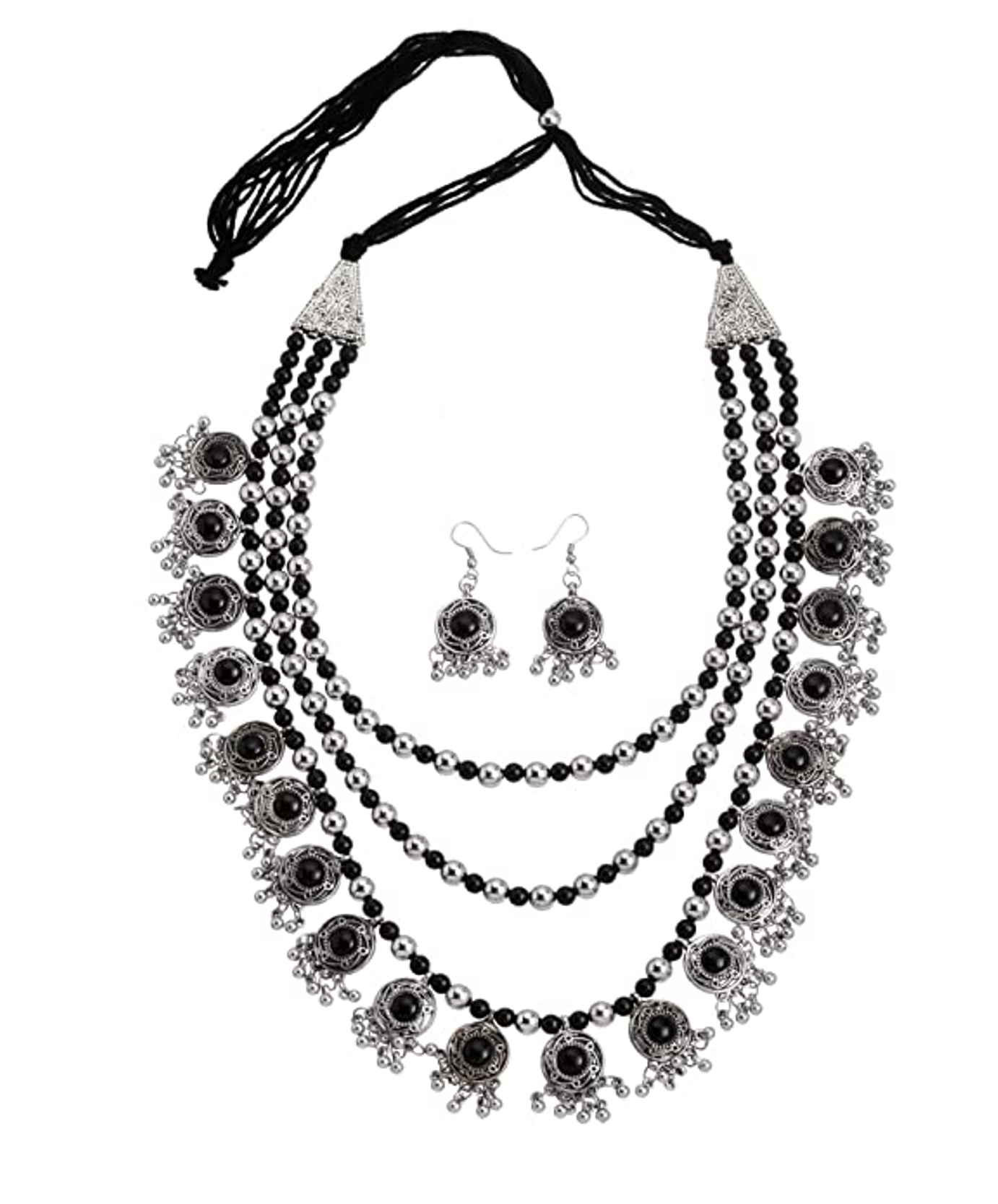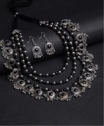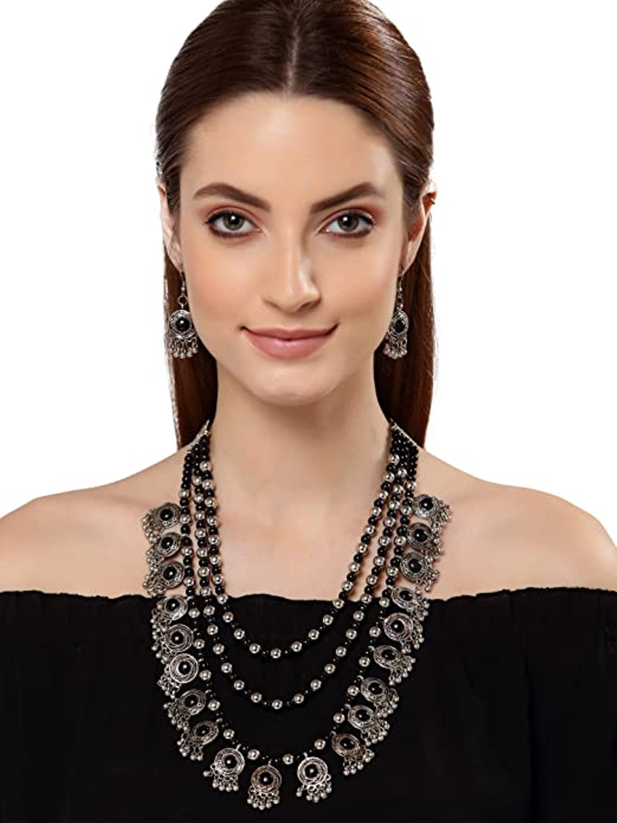 - Classic look Silver Oxidised Necklace set with Jhumka earrings for women to wear,