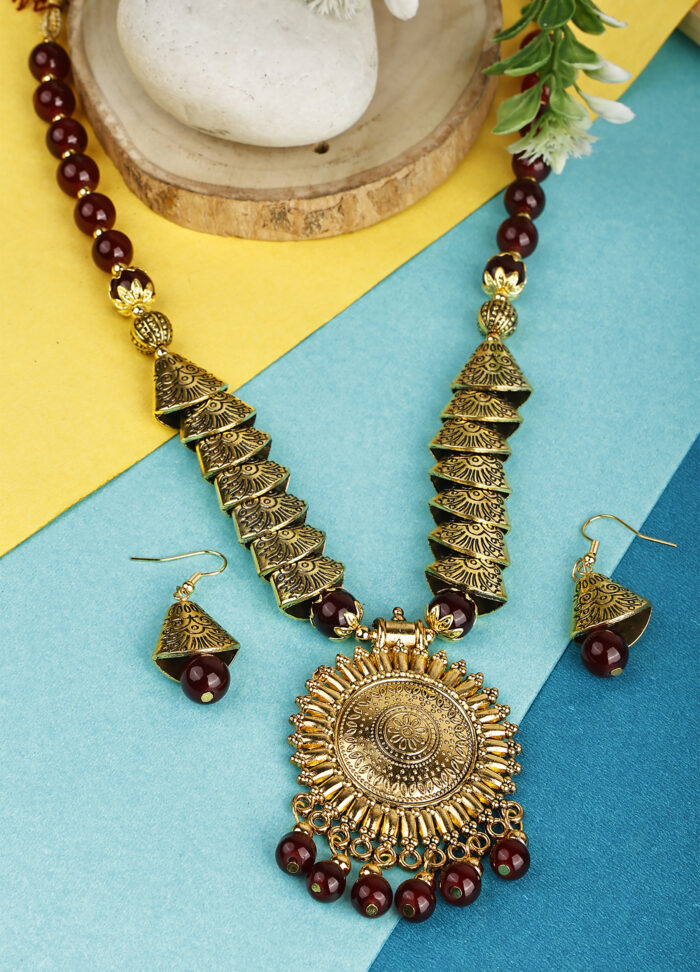 Be the first to review “Maroon Oxidised Golden Round Sun Design” Cancel reply