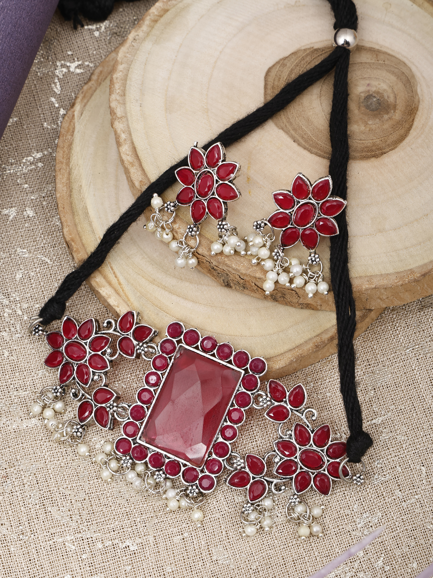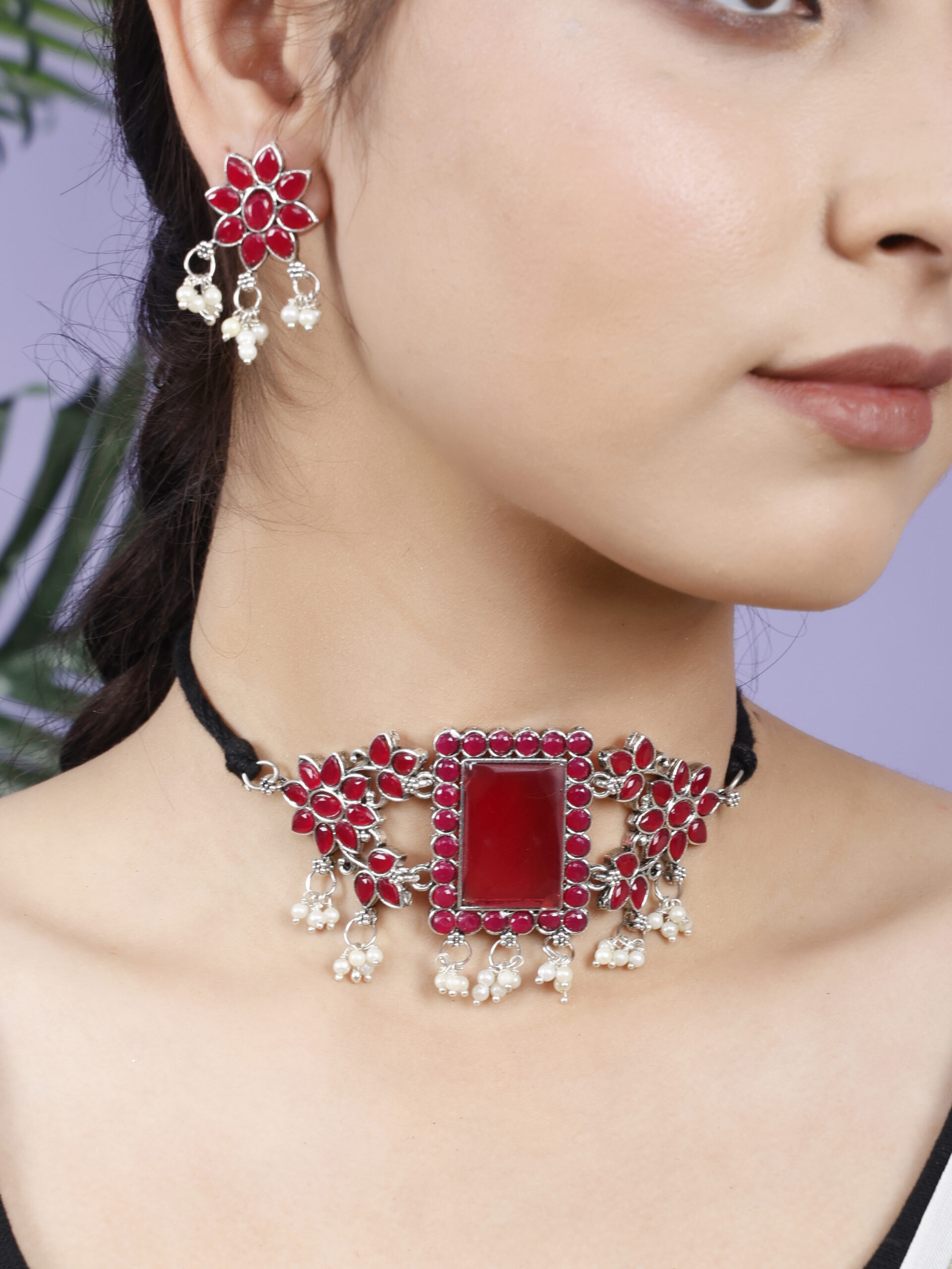 Maroon With Rectangular Big stone choker