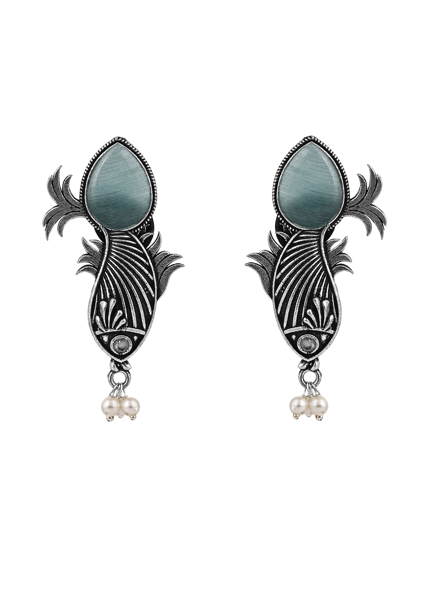 SKU: Mint Green Ox Stone Fish Design Earring Category: