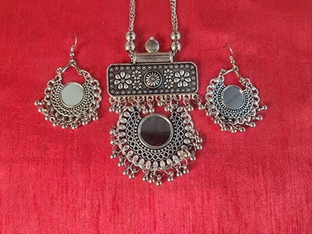 - Latest traditional oxidised silver necklace jewellery set