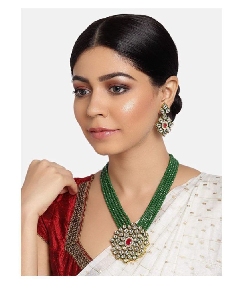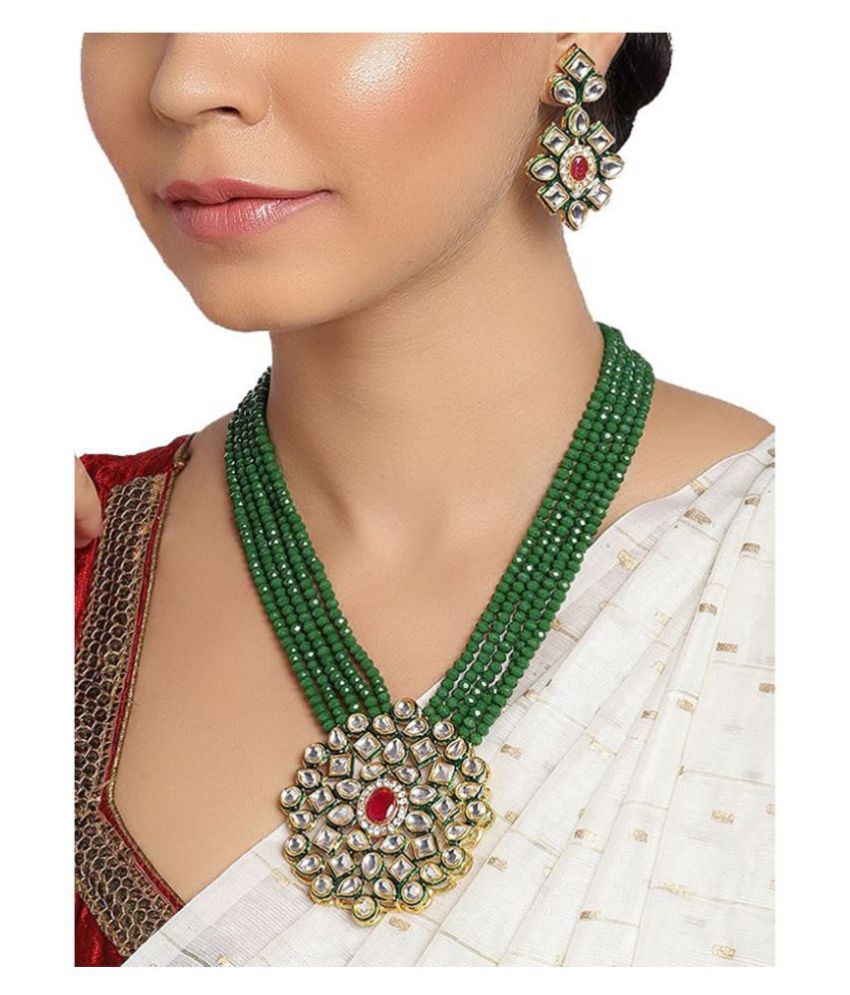 Represent Pure Kundan Crystal Moti Necklace Set for Women and girls. Gift someone special on the occasion Of karwa chauth.