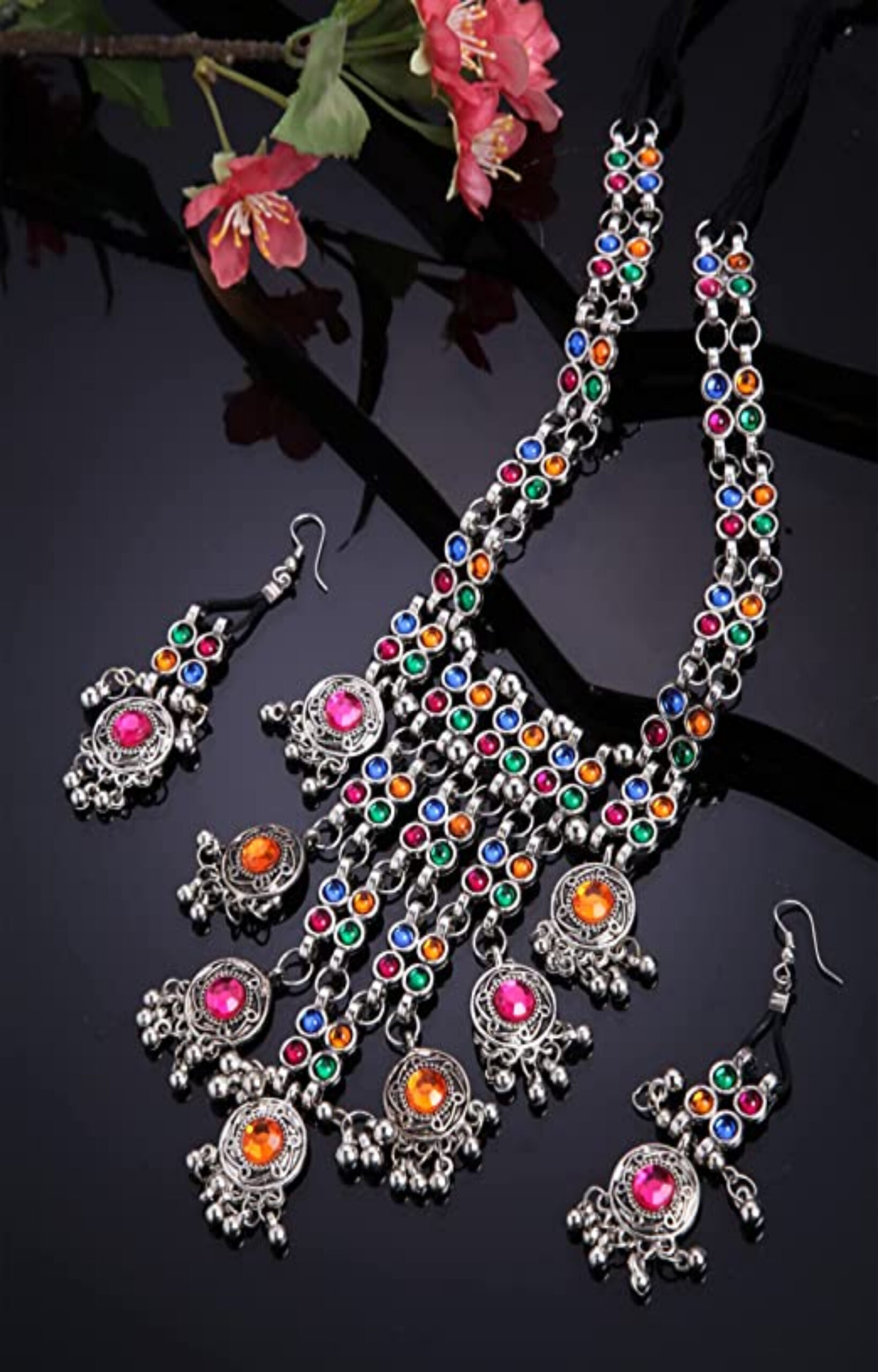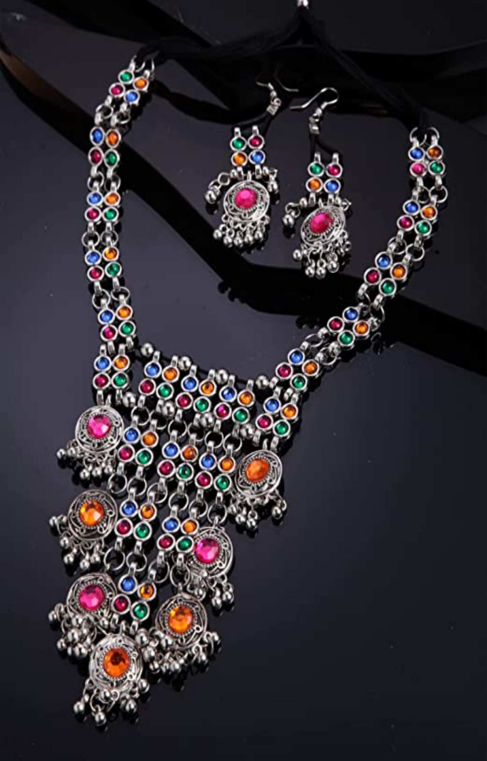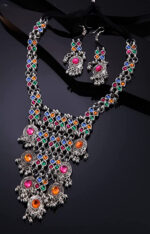 - Latest traditional oxidised silver necklace jewellery set