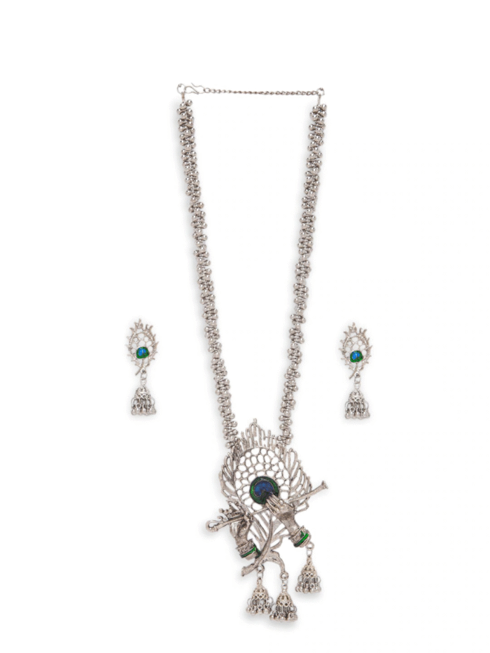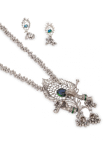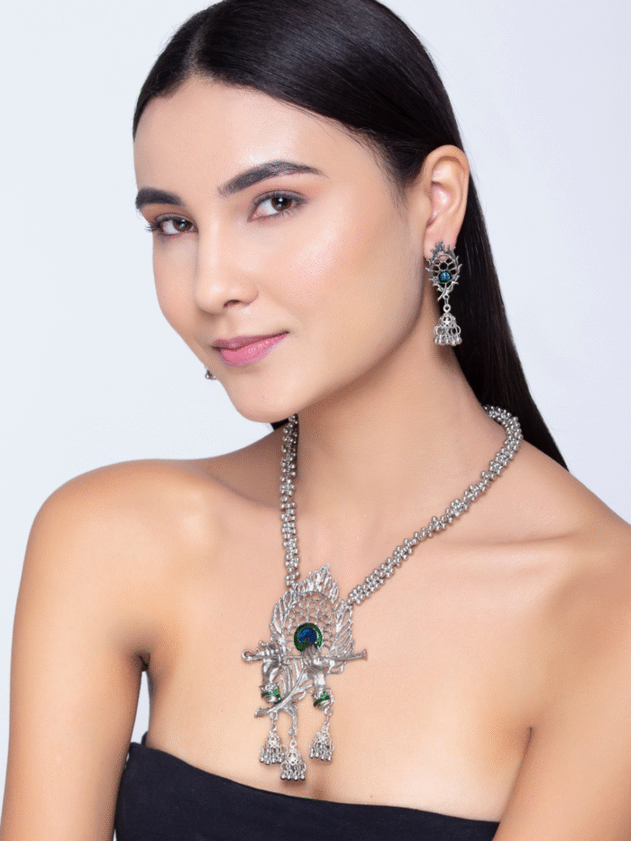 - Classic look Silver Oxidised Necklace set with Jhumka earrings for women to wear,