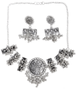 - Classic look Silver Oxidised Necklace set with Jhumka earrings for women to wear,
