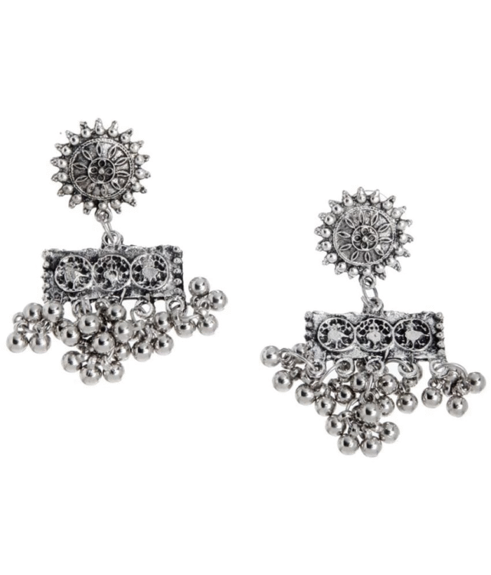 - Classic look Silver Oxidised Necklace set with Jhumka earrings for women to wear,