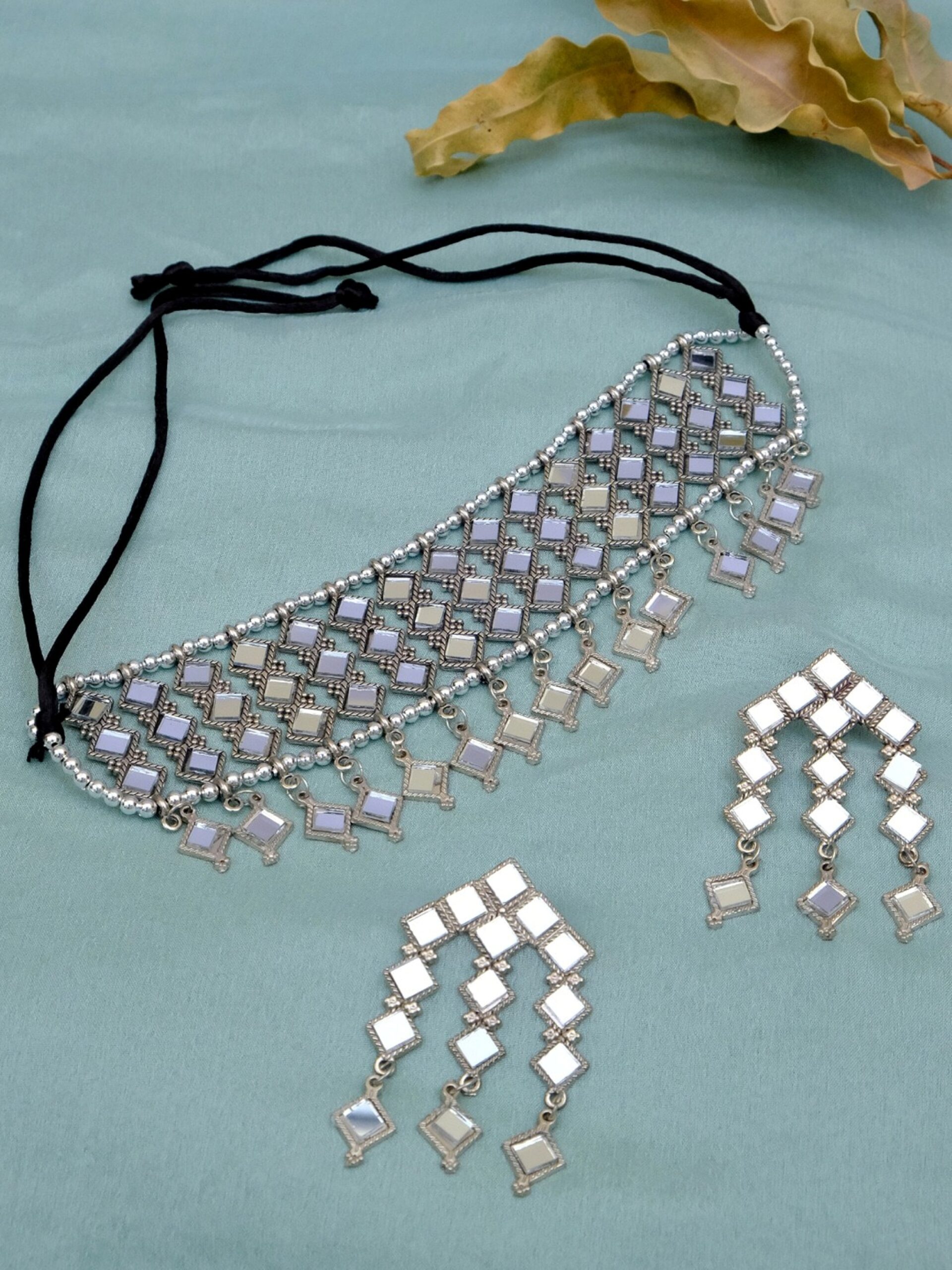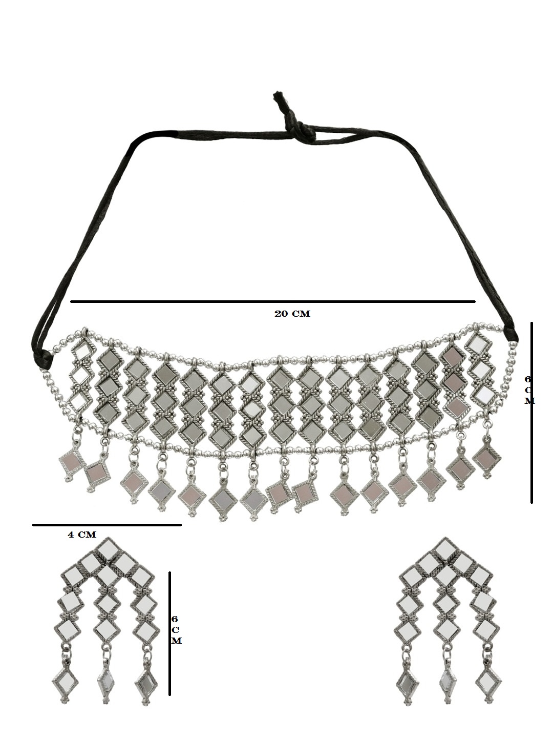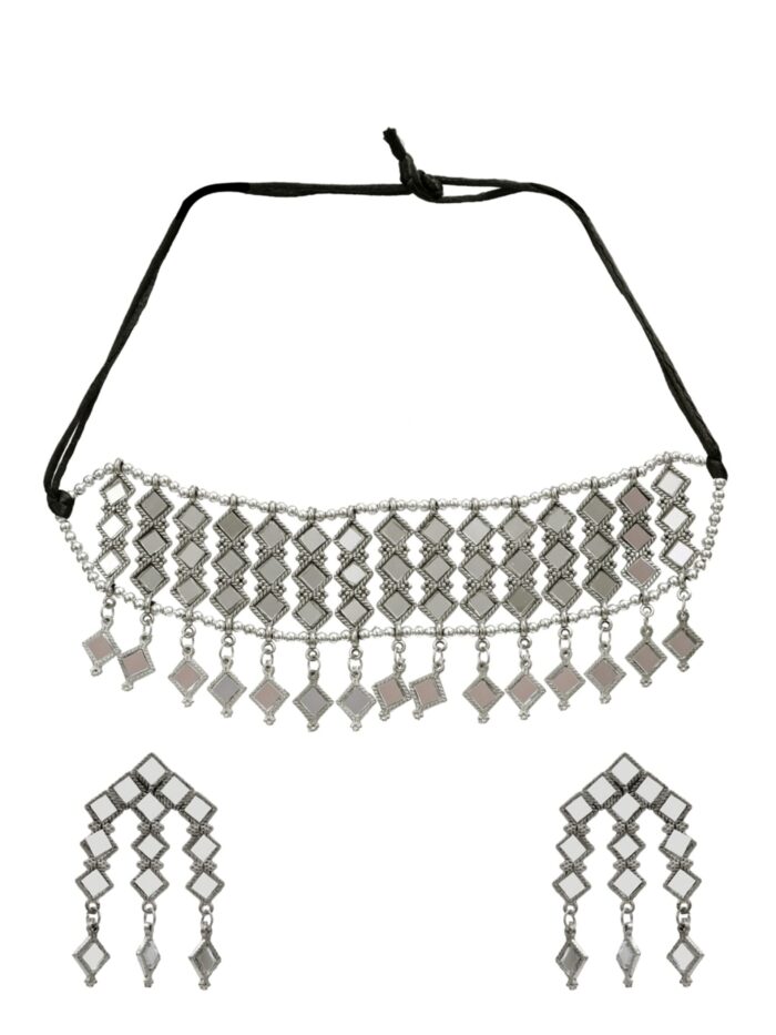 - Classic look Silver Oxidised Necklace set with Jhumka earrings for women to wear,