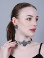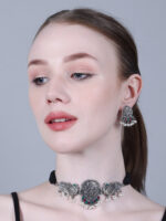 - Classic look Silver Oxidised Necklace set with Jhumka earrings for women to wear,