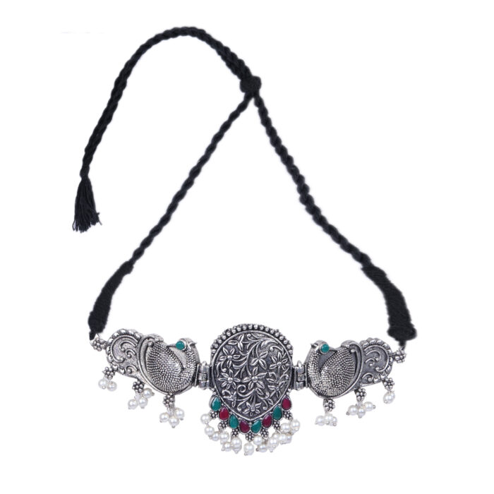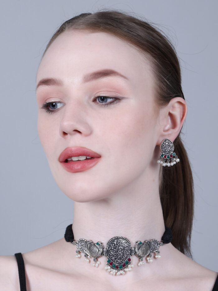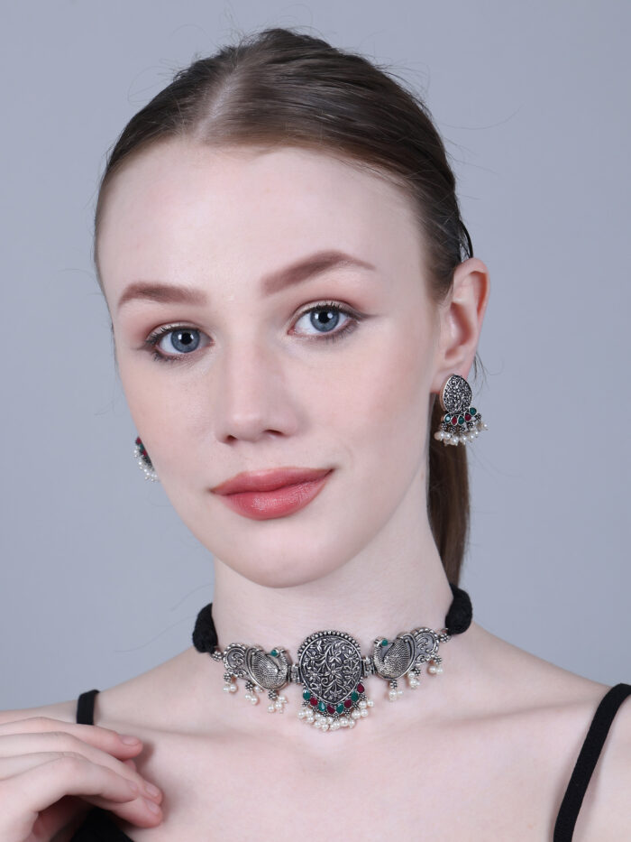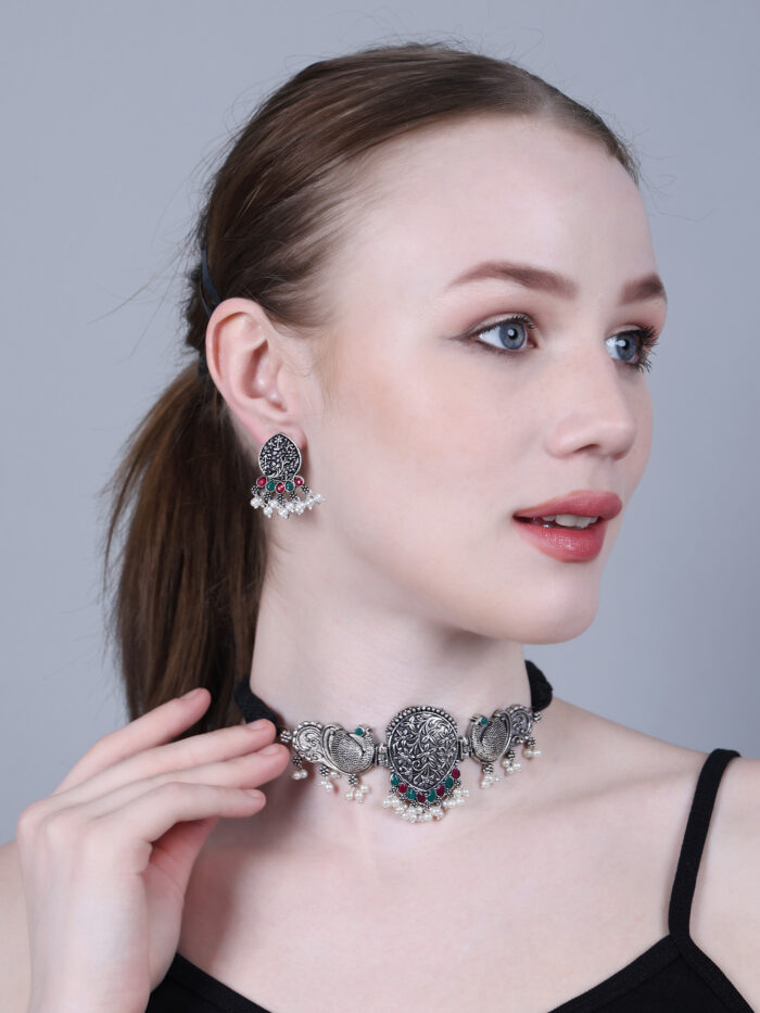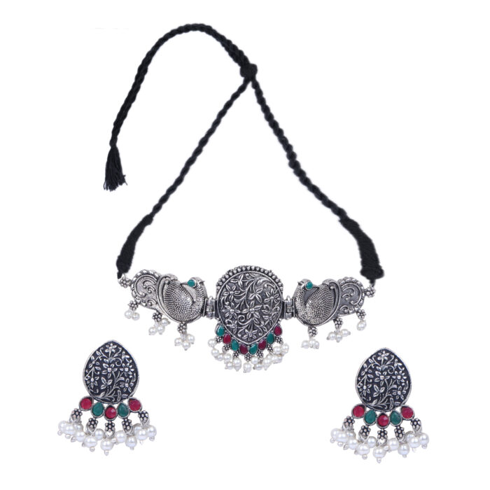- Latest traditional oxidised silver necklace jewellery set