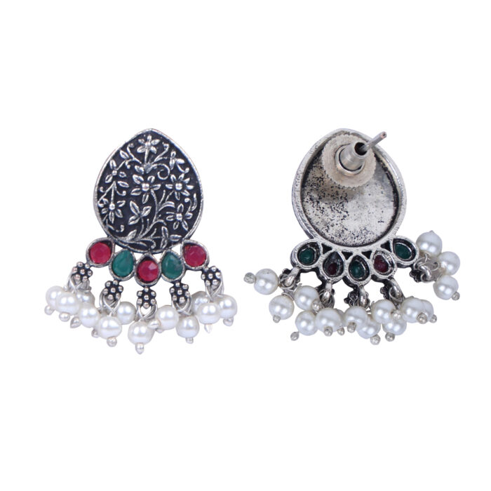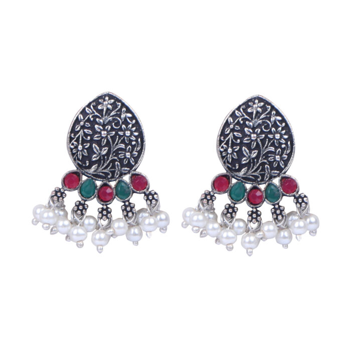 - Classic look Silver Oxidised Necklace set with Jhumka earrings for women to wear,