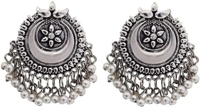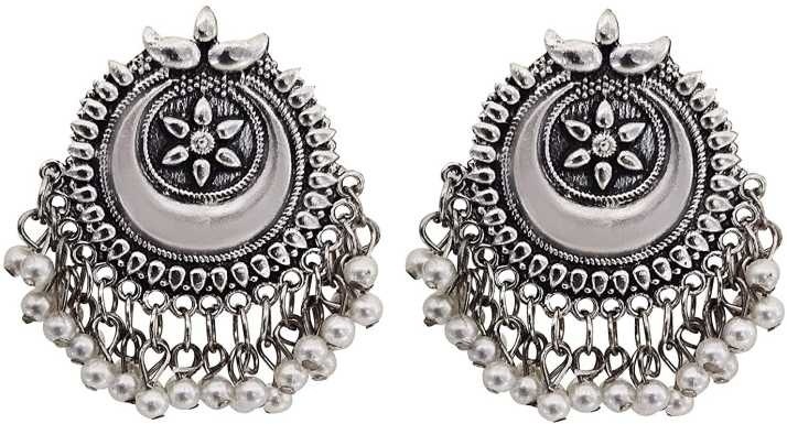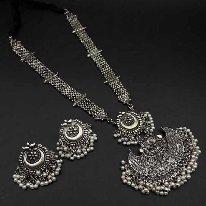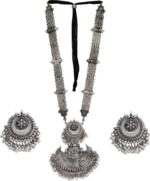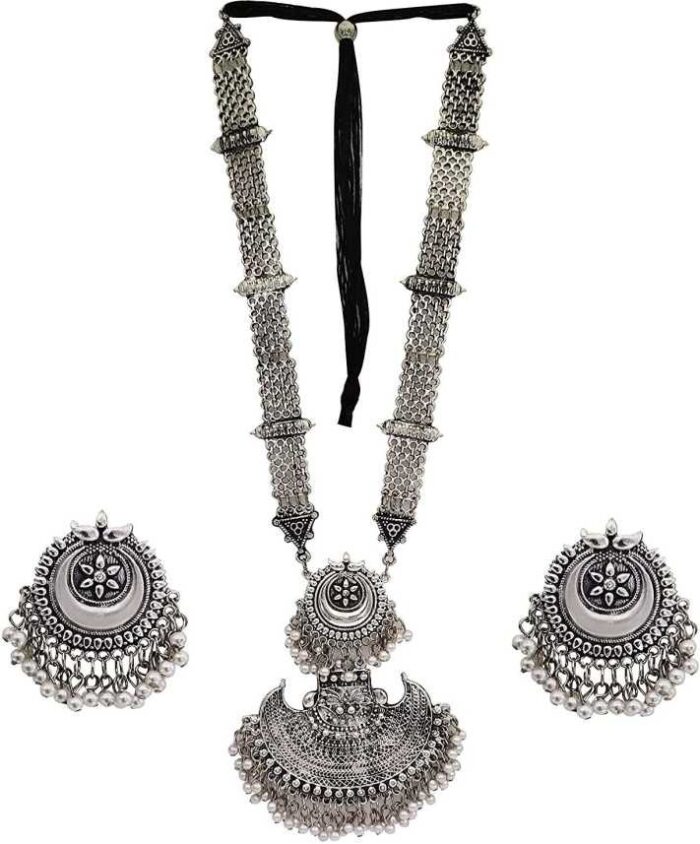 - Classic look Silver Oxidised Necklace set with Jhumka earrings for women to wear,