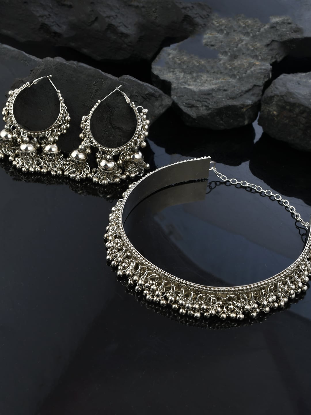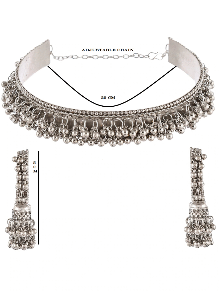- Classic look Silver Oxidised Necklace set with Jhumka earrings for women to wear,